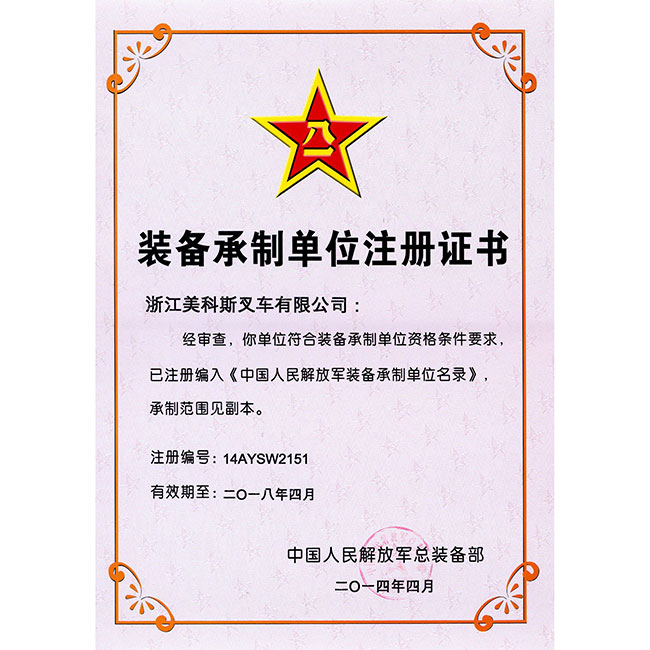 裝備承制單位注冊證書